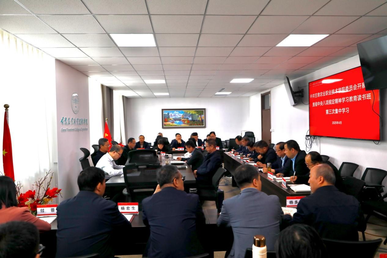 4月23日,学校开展深入贯彻中央八项规定精神学习教育读书班第三次集中学习会。党委书记薛仰全主持学习会。