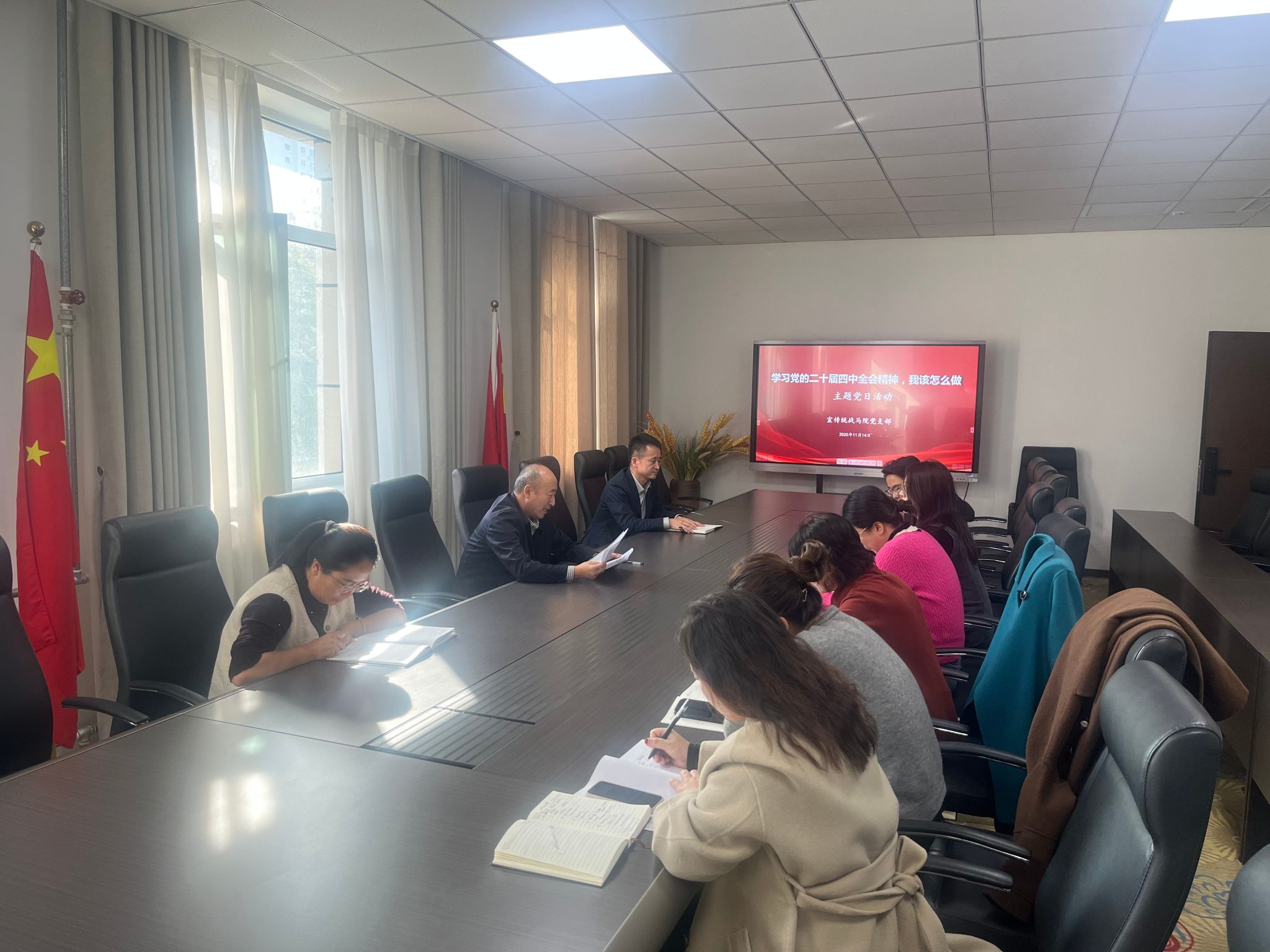 为深入学习贯彻党的二十届四中全会精神,切实把全会精神转化为推动工作的实际效能,11月14日上午,宣传统战马院党支部以“学习贯彻党的二十届四中全会精神,我该怎么做”为主题开展主题党日活动。党委委员、副校长马万锋以普通党员身份全程参与并作交流发言,活动由支部书记杨多海主持。