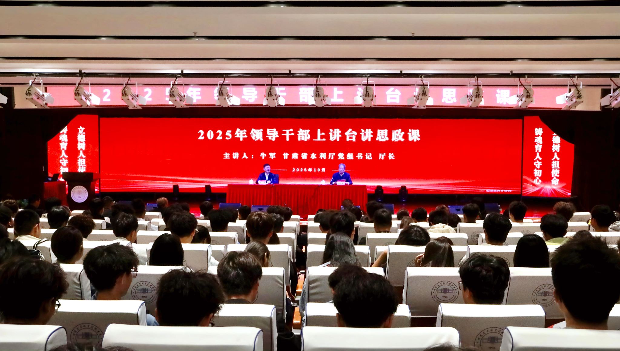 10月15日,甘肃省水利厅党组书记、厅长牛军以“在历史与现实的交汇中砥砺前行 为建设幸福美好新甘肃贡献青春力量”为主题,为我校师生们带来了一场内容丰富、思想深刻的思政大课。党委委员、副校长刘宗盛主持报告会,党委宣传统战部、马克思主义学院,思政课教师以及学生代表近300人参加。