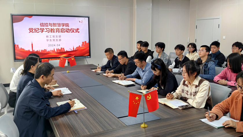4月15日下午,信控与智慧学院党纪学习教育启动仪式在经权楼501会议室举行。学院全体师生党员以线下和线上相结合的方式参加会议,学院党总支书记主持本次会议。