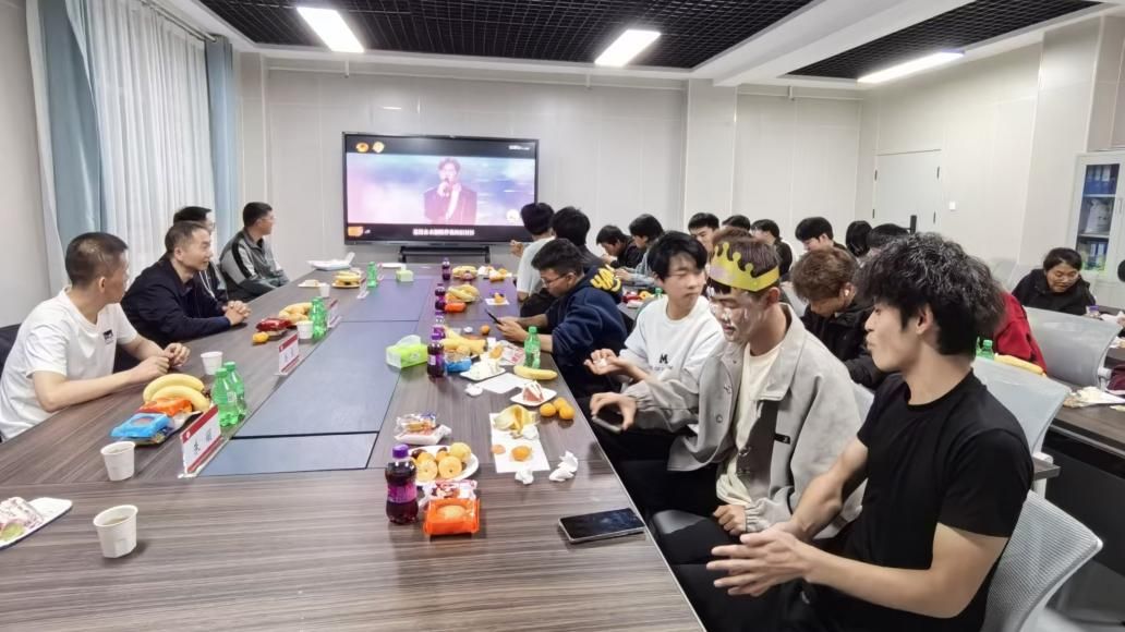活动现场,学院为同学们精心准备了香甜的月饼、各式饮料和新鲜水果,师生们围坐在一起,亲切交谈,分享家乡的中秋习俗和校园生活的趣事,欢声笑语不断。大家一同观看了精彩的中秋晚会电视直播,在浓厚的节日氛围中共度美好夜晚。活动期间,恰逢一位留校同学生日,学院特意准备了生日蛋糕,伴随着温馨的生日祝福歌声,全体师生共同为这位“寿星”庆祝生日,将现场气氛推向高潮。分享蛋糕的甜蜜时刻,定格了师生间深厚的情谊。