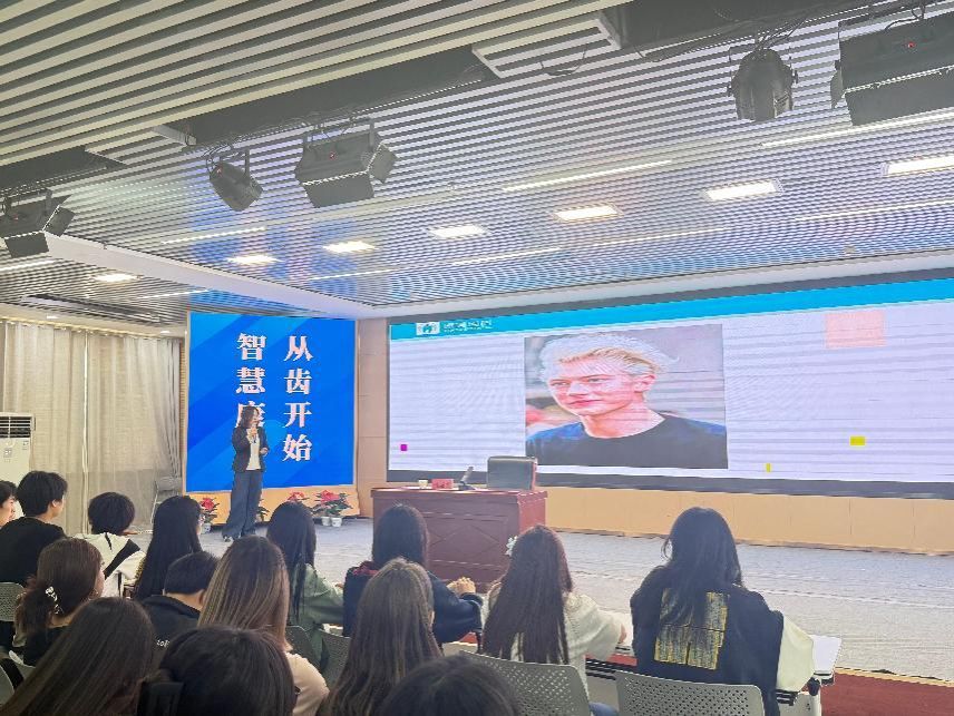 4月10日,康养与教育学院举办“智慧康养,从‘齿’开始”口腔健康专题讲座。讲座邀请康美齿科东岗分院杨丽霞医师主讲,康养与教育学院党总支书记、相关负责老师及300余名学生参加本次活动。