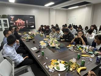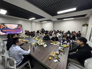活动现场气氛热烈,师生共同观看中秋晚会精彩节目,畅谈家国情怀与文化传承。学院负责人向同学们致以节日的问候,亲切询问大家假期的学习生活安排,并勉励同学们珍惜时光、互相关爱,在校如在家。老师们为同学们分发月饼和水果,现场笑语不断,暖意融融。